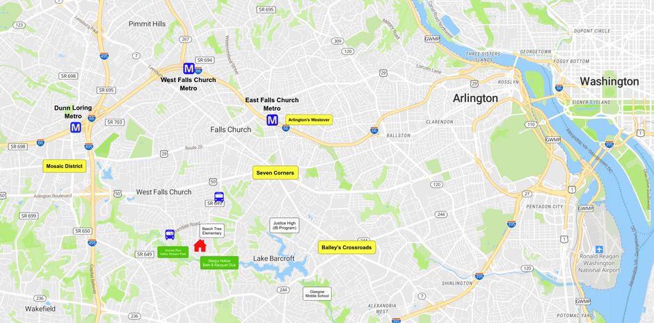 Although nestled in a serene setting, you are just minutes away from some of the best shopping and dining destinations, including the Mosaic District, Tysons Corner & Galleria Malls, The Boro, Bailey’s Crossroads, and Arlington’s Westover. Commuting is a breeze with easy access to I-66, I-495, Rt 50, and a quick 10 mile drive to Washington, DC. Public transportation also could not be more convenient, with East Falls Church Metro 3.5 miles away, Metrobus under a mile and the Seven Corners Transit Center nearby. For outdoor enthusiasts, you are a minute or two walk from Holmes Run Park and the area features miles of trails for running, biking, and dog walking, plus nearby access to two swim and tennis clubs. This home offers a unique lifestyle where comfort meets accessibility. Come make this lovely home yours!